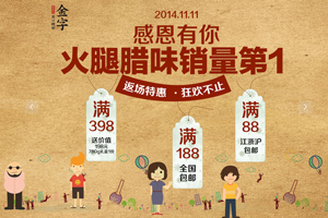 入了12月的江南,空氣中總會飄散著一股似近似遠的肉香味,勾人魂魄到直咽口水。窗檐下懸掛的香腸臘肉有一種“年之將近”的即視感,因為那就是刻到骨子里的年味啊。就算時代再變化,“小雪腌菜,大雪腌肉”的習慣依然被懂得生活的人代代傳承著。2014年的金字天貓旗艦店雙12來了,為您準備的好臘味上新,十二道臘味年前抄底價。春運車票已經(jīng)可以買了,臘味也同樣:回家過春節(jié),你準備好了沒有?